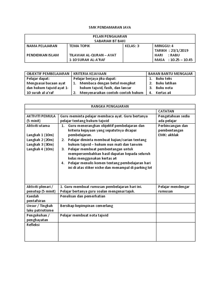 Contoh Rph Hafazan Tingkatan 3 Pdf